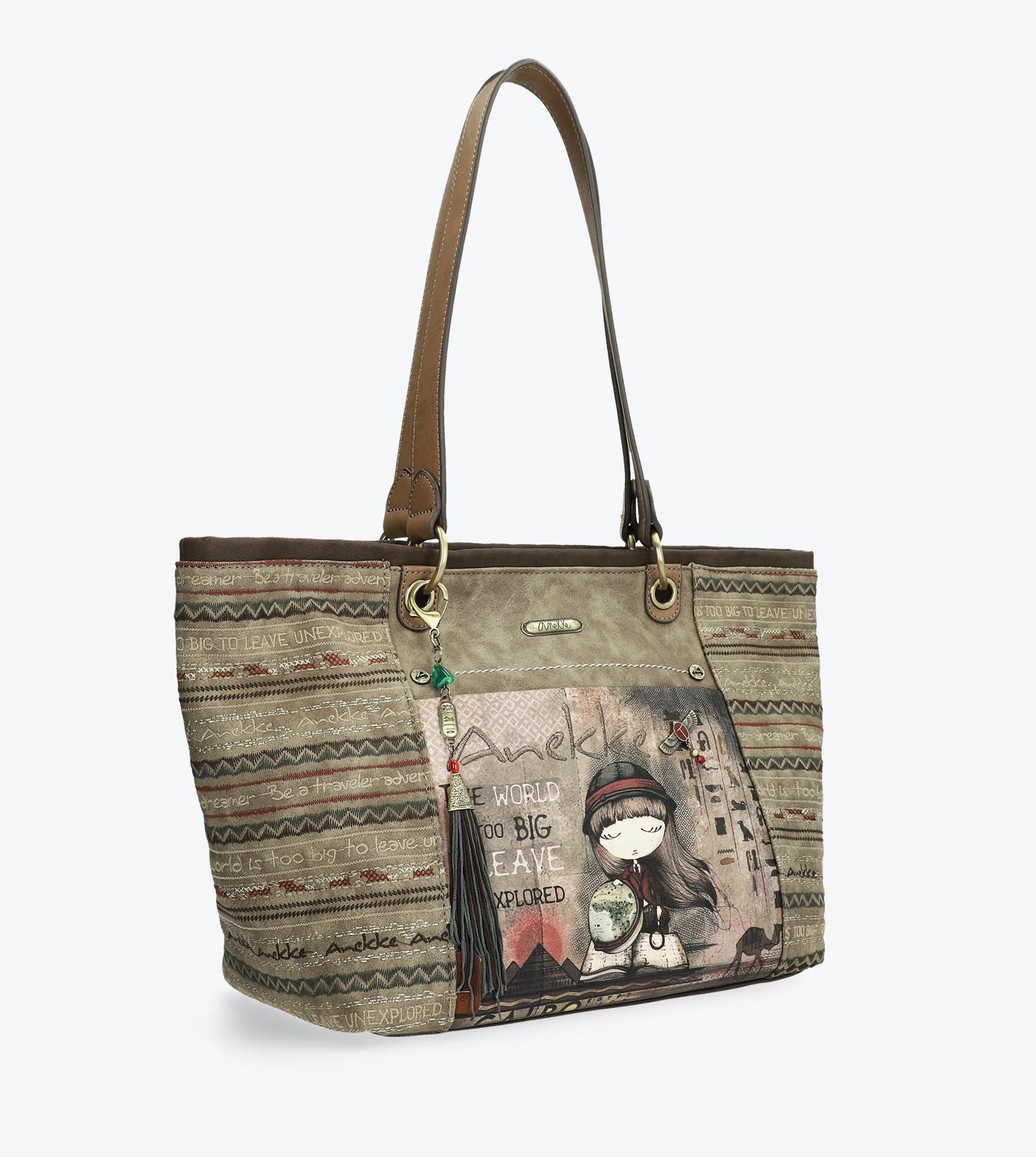 Anekke PRINTED TOTE BAG IN BROWN TONES